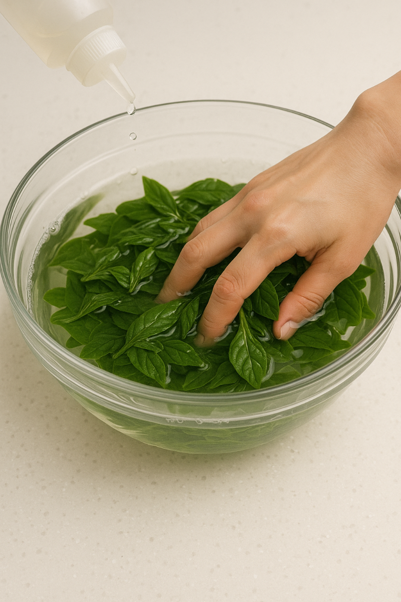흙이나 이물질을 제거한 다음 → 넓은 볼에 담아 식초 몇 방울 떨어뜨린 물에 살살 흔들어 세척합니다. → 흐르는 물로 가볍게 헹굼 → 물기 제거합니다. 나물·무침은 굵은 줄기는 덜어내고 잎 위주로 사용하면 식감이 깔끔합니다.